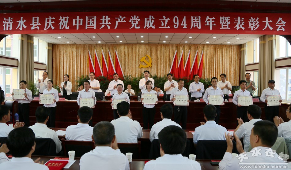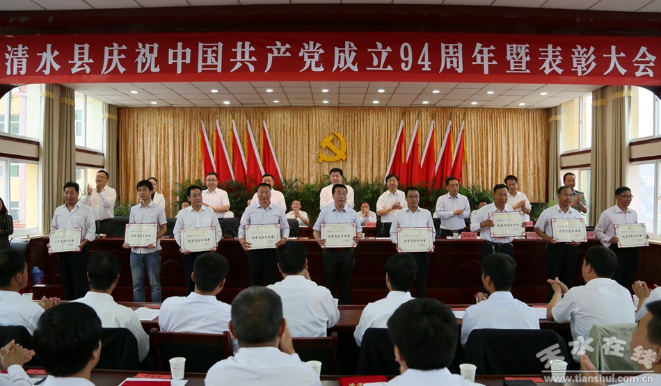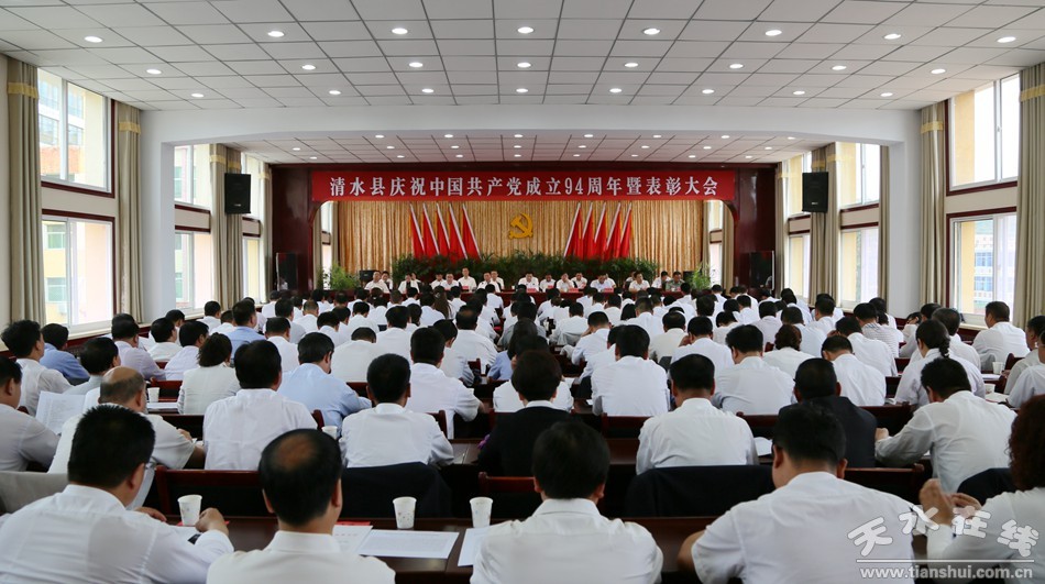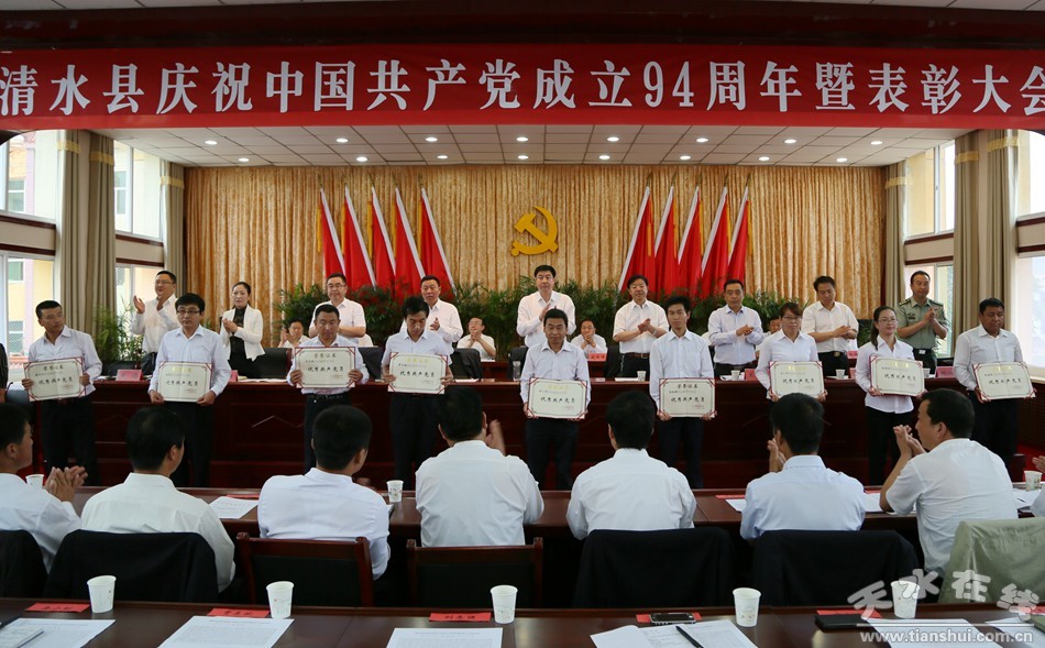 6月27日,清水縣慶祝中國(guó)共產(chǎn)黨成立94周年暨表彰大會(huì)在軒轅賓館北二樓會(huì)議室舉行。熱烈慶祝黨的生日,表彰先進(jìn),展望未來(lái),進(jìn)一步動(dòng)員和激勵(lì)全縣各級(jí)黨組織和廣大黨員以先進(jìn)典型為榜樣,振奮精神,開(kāi)拓創(chuàng)新,真抓實(shí)干,為實(shí)現(xiàn)全縣經(jīng)濟(jì)社會(huì)轉(zhuǎn)型跨越崛起發(fā)展、全面建成小康社會(huì)再立新功、再創(chuàng)佳績(jī)。