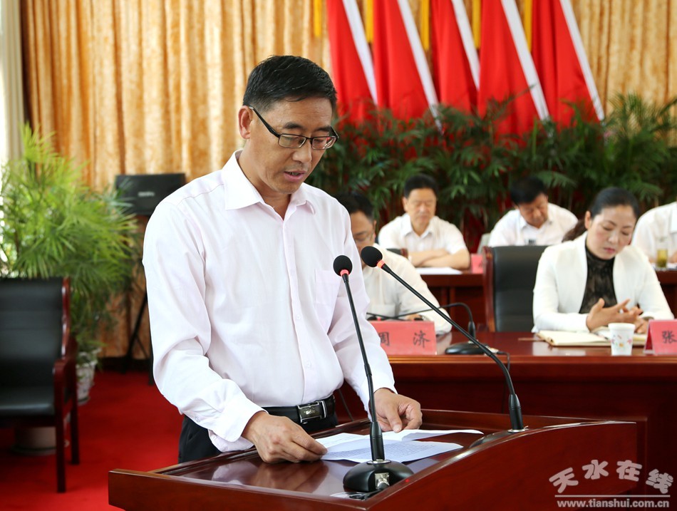 劉天波說(shuō),緊跟黨的前進(jìn)步伐,我縣也走過(guò)了不平凡的發(fā)展歷程。1943年,我縣就有了黨的地下組織,為推動(dòng)全縣解放事業(yè)做了艱苦卓絕的斗爭(zhēng)。建國(guó)以后,特別是改革開(kāi)放以來(lái),在黨的正確領(lǐng)導(dǎo)下,歷屆縣委團(tuán)結(jié)帶領(lǐng)廣大黨員、干部群眾發(fā)揚(yáng)自力更生、艱苦奮斗的優(yōu)良傳統(tǒng),頑強(qiáng)拼搏,實(shí)干創(chuàng)業(yè),使清水大地發(fā)生了翻天覆地的變化?h十四次黨代會(huì)以來(lái),縣委充分發(fā)揮統(tǒng)攬全局、協(xié)調(diào)各方的領(lǐng)導(dǎo)核心作用,堅(jiān)持以黨的十八大和十八屆三中、四中全會(huì)以及習(xí)近平總書(shū)記系列重要講話精神為指導(dǎo),圍繞同步建成全面小康社會(huì)總目標(biāo),認(rèn)真落實(shí)“兩手抓兩手硬、雙促進(jìn)雙落實(shí)”的總要求,統(tǒng)籌推進(jìn)四大布局構(gòu)想和“5551”發(fā)展戰(zhàn)略,推動(dòng)全縣發(fā)展事業(yè)步入了快車道,全縣經(jīng)濟(jì)社會(huì)健康發(fā)展,人民生活明顯改善,黨風(fēng)政風(fēng)持續(xù)改進(jìn),黨的建設(shè)取得顯著成就,呈現(xiàn)出了心齊氣順、風(fēng)正勁足、和諧向上、蓬勃發(fā)展的良好局面。這些成績(jī)的取得,是縣委全面貫徹落實(shí)黨的各項(xiàng)方針政策,科學(xué)決策,正確領(lǐng)導(dǎo)的結(jié)果,是全縣各級(jí)黨組織和黨員、干部發(fā)揮先鋒模范作用,團(tuán)結(jié)帶領(lǐng)廣大群眾頑強(qiáng)拼搏、務(wù)實(shí)苦干的結(jié)果。