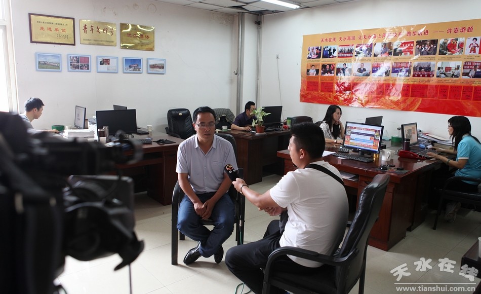 (圖為甘肅衛(wèi)視記者在天水在線采訪豐望鄉(xiāng)黨委書記米偉)