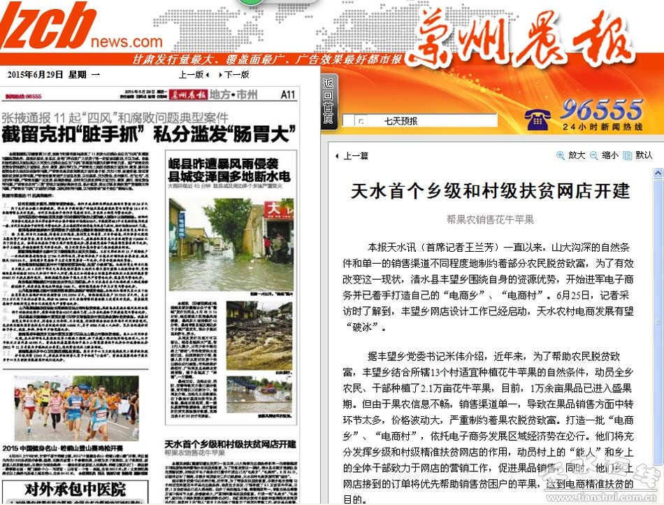 6月25日,記者在天水在線網(wǎng)站采訪時(shí)獲悉,豐望鄉(xiāng)已和天水在線商定,由天水在線協(xié)助豐望鄉(xiāng)和柏樹村在淘寶開設(shè)網(wǎng)店(主要銷售當(dāng)?shù)靥禺a(chǎn)花牛蘋果),培訓(xùn)有關(guān)人員。目前,天水在線已經(jīng)向淘寶提交了開設(shè)網(wǎng)店的有關(guān)申請(qǐng),網(wǎng)店設(shè)計(jì)工作已經(jīng)啟動(dòng)。據(jù)了解,豐望鄉(xiāng)和柏樹村網(wǎng)店將成為天水市首個(gè)鄉(xiāng)級(jí)和村級(jí)精準(zhǔn)扶貧網(wǎng)店。