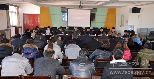 12月15日,天水市教育局副局長張笑青帶領(lǐng)市公安局、交通局、安監(jiān)局等相關(guān)部門負(fù)責(zé)人一行,深入清水縣督查冬季學(xué)校安全工作,并召開座談會(huì)。清水縣政府副縣長張煒、縣教體局、安監(jiān)局等相關(guān)部門和單位負(fù)責(zé)人參加座談會(huì)。