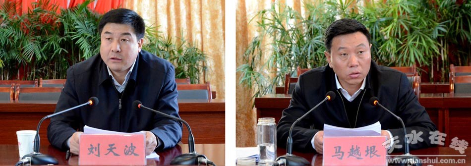 ▲清水縣委書記劉天波作工作匯報(bào) ,清水縣委副書記、縣長馬越垠作工作匯報(bào)