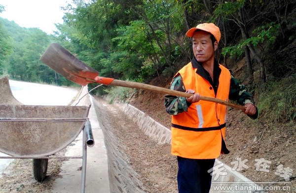 桐王公路建成后,李海生就擔任起了這條道路的環(huán)衛(wèi)任務,從此,他每天都行走在桐王路上,維護者這里的環(huán)境衛(wèi)生,每次大風暴雨等惡劣天氣之后,他都會及時地對路面上的樹葉樹枝等進行清理,確保行車安全,平時,他總是喜歡行走在桐王公路上,看看哪里還需要修補,哪里的水渠還需要清理,他把桐王公路當成了自己的另外一個家。