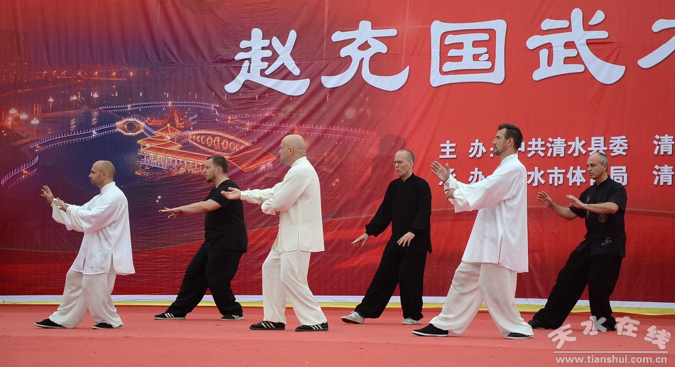 7月24日,軒轅文化旅游活動趙充國名家武術(shù)展演在清水舉行,來自德國伏羲太極道的6位拳師登臺獻(xiàn)藝,助陣敦煌行•絲綢之路國際旅游節(jié)2016年清水縣軒轅文化旅游暨溫泉養(yǎng)生活動。