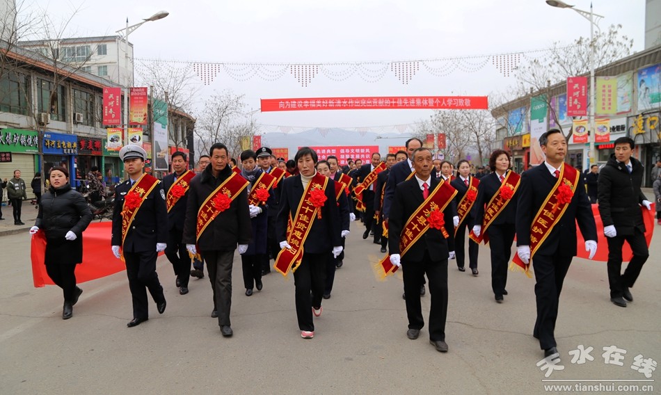 2017年1月18日,清水縣隆重舉行“十佳先進(jìn)集體暨個人”風(fēng)采展示活動,122名十佳先進(jìn)個人和集體從軒轅廣場出發(fā),沿中山路,經(jīng)二馬路、永清路,步行前往軒轅大劇院。一路上,彩旗招展、鑼鼓喧天、行人注目,充分展示了十佳個人和集體的精神風(fēng)貌,為弘揚(yáng)清水新精神、展示清水新形象,起到了良好的推動作用。