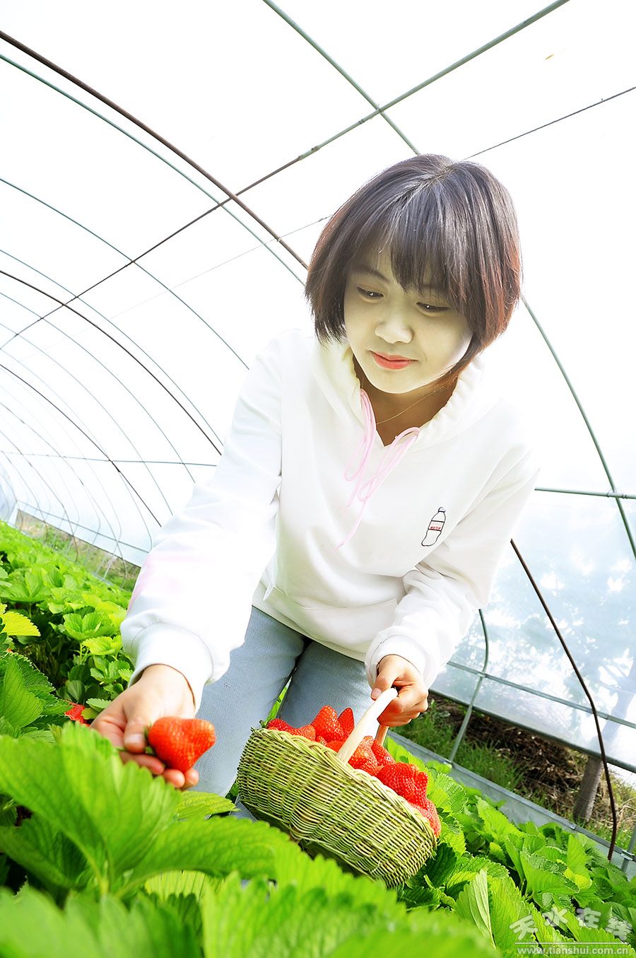 1、清水縣農業(yè)科技示范園區(qū)里的草莓生長在大棚中,地面上扣著地膜,所以采摘時請穿平底鞋,女士不要穿高跟鞋,高跟鞋會把地膜踩出洞來,破壞草莓的生長環(huán)境。