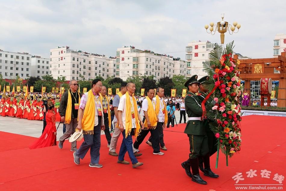 。ㄖ泄蔡焖形瘯浲蹁J,天水市人大常委會(huì)主任王光慶,中共天水市委副書記、市長(zhǎng)王軍,政協(xié)天水市委員會(huì)主席張明泰代表市四大組織敬獻(xiàn)花籃。)