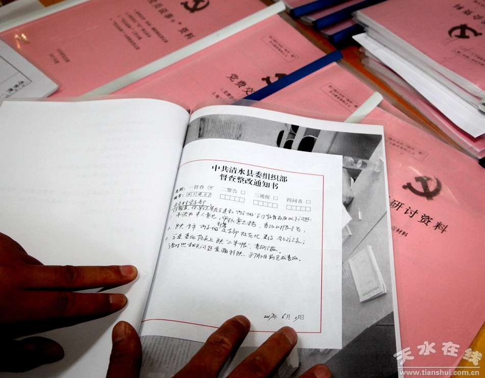 7月4日以來,中共清水縣委常委、組織部部長周濟(jì)帶隊督查鄉(xiāng)鎮(zhèn)黨建工作。據(jù)悉,此次督查是清水縣黨建工作“三步督查法”的第三步,由部班子成員帶隊,對18鄉(xiāng)鎮(zhèn)開展全覆蓋集中督查,到每個鄉(xiāng)鎮(zhèn)利用1天時間,采取“抓閹”的方式,隨機(jī)督查3個村和1-2個鄉(xiāng)屬機(jī)關(guān),有力推動了黨建工作任務(wù)落實見效。