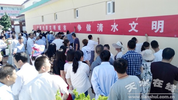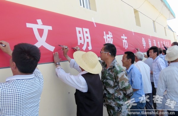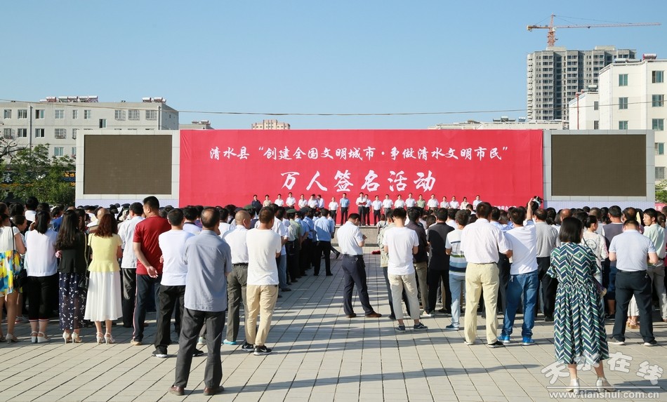 簽下一個(gè)名字,許下一份承諾。鄭重寫下一份寄語,心中牢記一份責(zé)任。7月11日,清水縣各部門、單位、鄉(xiāng)鎮(zhèn)開展“創(chuàng)建全國文明城市,爭做清水文明市民”萬人簽名活動(dòng),通過簽名,希望每一位市民切實(shí)增強(qiáng)榮譽(yù)感和責(zé)任感,積極參與到全國文明城市創(chuàng)建工作中來,從我做起、從點(diǎn)滴做起,做文明有禮的清水人,以自己的實(shí)際行動(dòng)和文明形象,為創(chuàng)建全國文明城市做出應(yīng)有的貢獻(xiàn)。