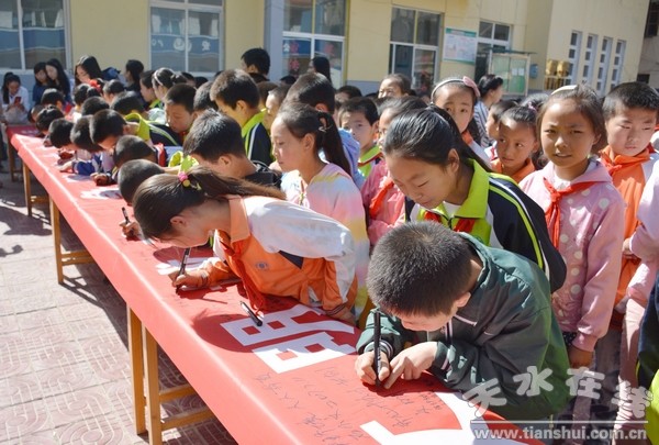 (清水縣東關(guān)小學(xué)開展“創(chuàng)建全國文明城市,爭做清水文明市民”萬人簽名活動(dòng))