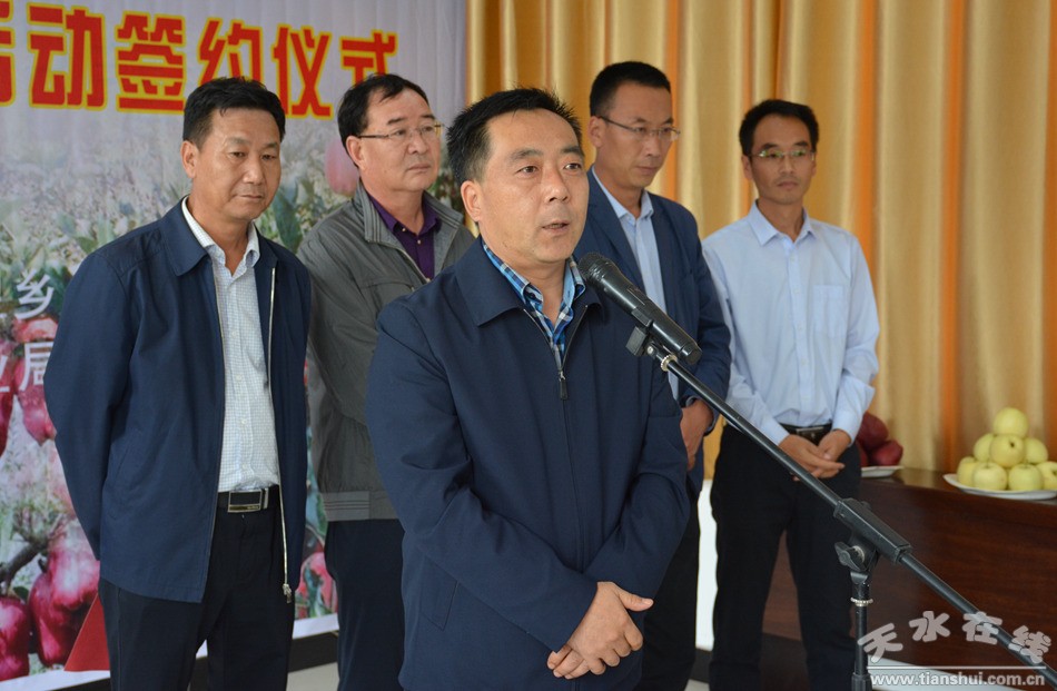 簽約儀式上,清水縣委副書記王新強(qiáng)作了講話;副縣長王懷珍圍繞蘋果大縣建設(shè)作了講話;豐望鄉(xiāng)黨委書記米偉做宣傳推介;北京新發(fā)地明輝果業(yè)負(fù)責(zé)人余輝代表企業(yè)和專業(yè)合作社發(fā)言;各村村委會主任與果品銷售企業(yè)負(fù)責(zé)人簽約。
