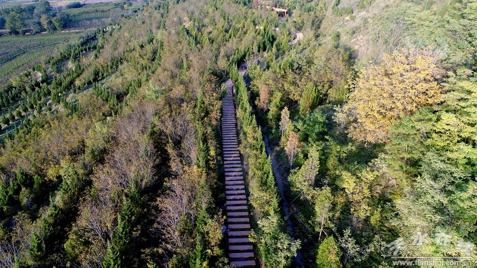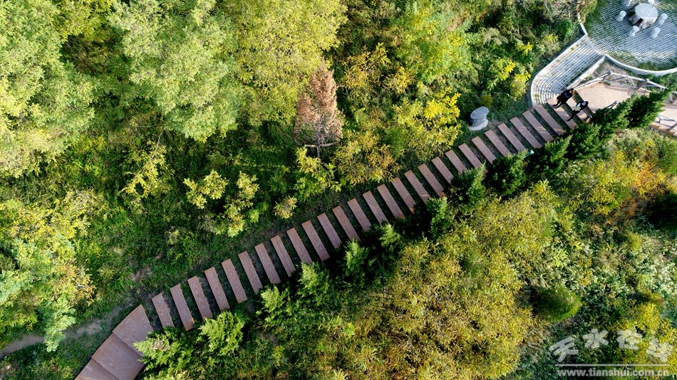 清水縣北山登山步道依山而建,從空中俯瞰,步道的路線設(shè)置猶如繩索,把沿途的亭臺樓閣、自然景觀資源連接成一個整體,形成一條完整美麗的‘珍珠項鏈’,將生態(tài)園串聯(lián)成集旅游觀光、森林探險、果品采摘、休閑娛樂為一體的旅游帶。