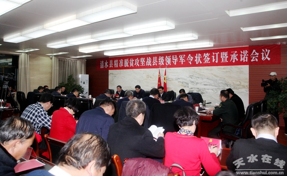 12月27日晚,市人大常委會副主任、清水縣委書記劉天波主持召開全縣精準(zhǔn)脫貧攻堅戰(zhàn)縣級領(lǐng)導(dǎo)軍令狀簽訂暨承諾會議。明確縣級領(lǐng)導(dǎo)2018年各自的脫貧攻堅責(zé)任,以上率下打好明年的精準(zhǔn)脫貧攻堅戰(zhàn),給縣委、縣政府和全縣人民交一份滿意的答卷。