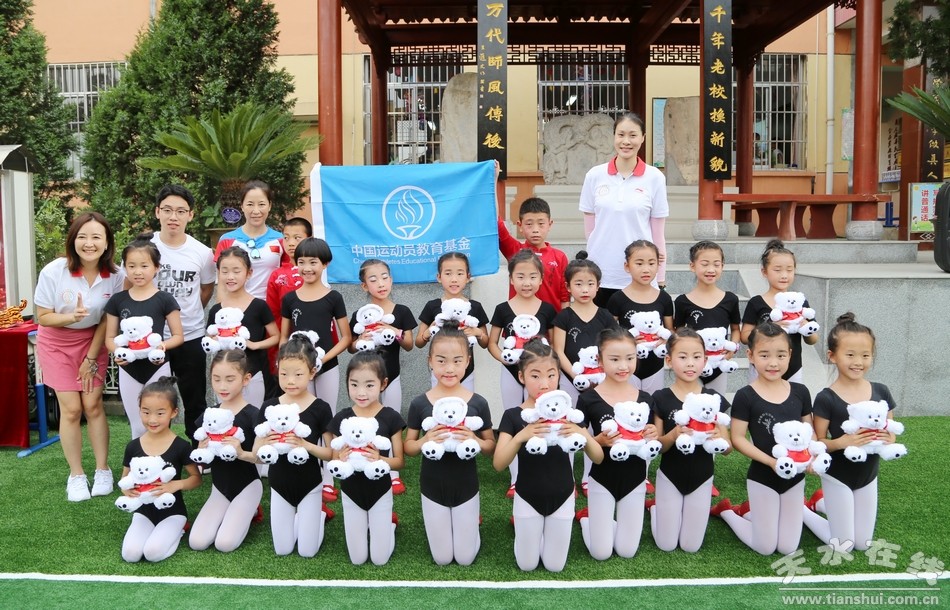 (奧運(yùn)冠軍向原泉小學(xué)貧困學(xué)生贈送體育用品)