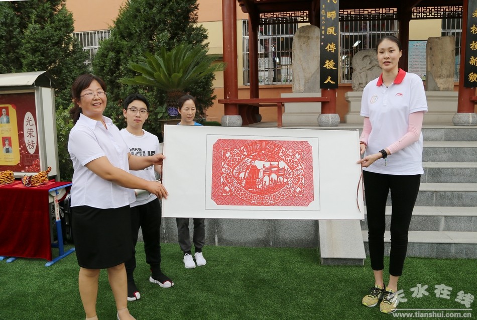 (原泉小學(xué)向三位奧運(yùn)冠軍贈送清水剪紙)
