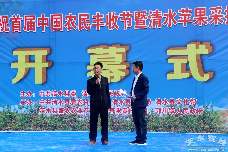 (市人大常委會(huì)副主任、清水縣委書(shū)記劉天波宣布“清水縣慶祝首屆中國(guó)農(nóng)民豐收節(jié)暨清水蘋(píng)果采摘體驗(yàn)活動(dòng)開(kāi)幕”)