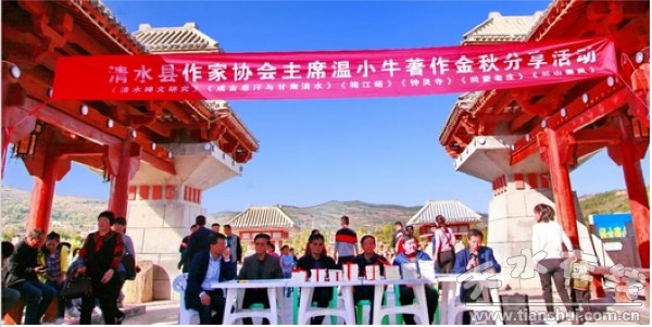 10月4日,天藍(lán)地綠,瓜果飄香,祖國(guó)華誕,全民同歡。清水縣作家協(xié)會(huì)主席溫小牛著作分享活動(dòng)在軒轅橋舉行,縣作協(xié)在家會(huì)員和廣大游園群眾參加了活動(dòng)。