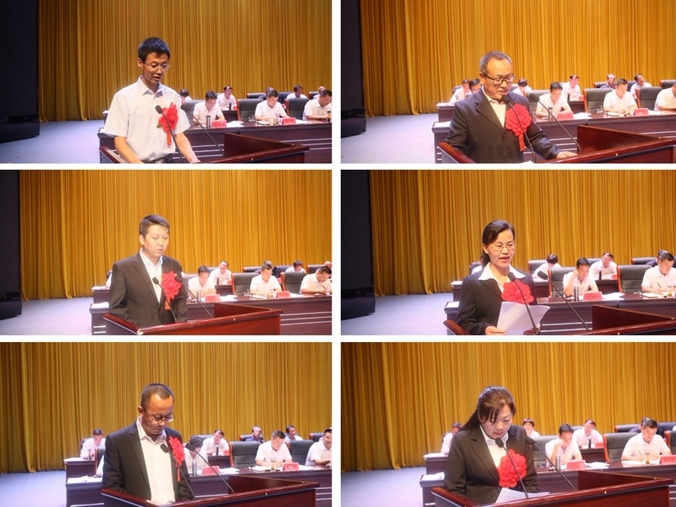 會議書面印發(fā)了《中共清水縣委關(guān)于推進(jìn)教育事業(yè)高質(zhì)量發(fā)展的意見》和《中共清水縣委、清水縣人民政府全面深化新時代教師隊(duì)伍建設(shè)改革的實(shí)施方案》,并對兩個文件起草情況做了說明;宣讀了《關(guān)于2018-2019學(xué)年度教育教學(xué)質(zhì)量獎勵決定》和《關(guān)于表彰2019年教育工作先進(jìn)集體先進(jìn)個人和教育光榮家庭的決定》,表彰獎勵了教育工作先進(jìn)鄉(xiāng)鎮(zhèn)、先進(jìn)學(xué)區(qū)、園丁代表、教育光榮家庭代表等先進(jìn)集體、先進(jìn)個人;先進(jìn)鄉(xiāng)鎮(zhèn)、先進(jìn)學(xué)區(qū)、先進(jìn)學(xué)校、優(yōu)秀班主任、優(yōu)秀教師、教育光榮家庭代表作了交流發(fā)言;縣政府與十八鄉(xiāng)鎮(zhèn)簽訂了《控輟保學(xué)目標(biāo)責(zé)任書》。