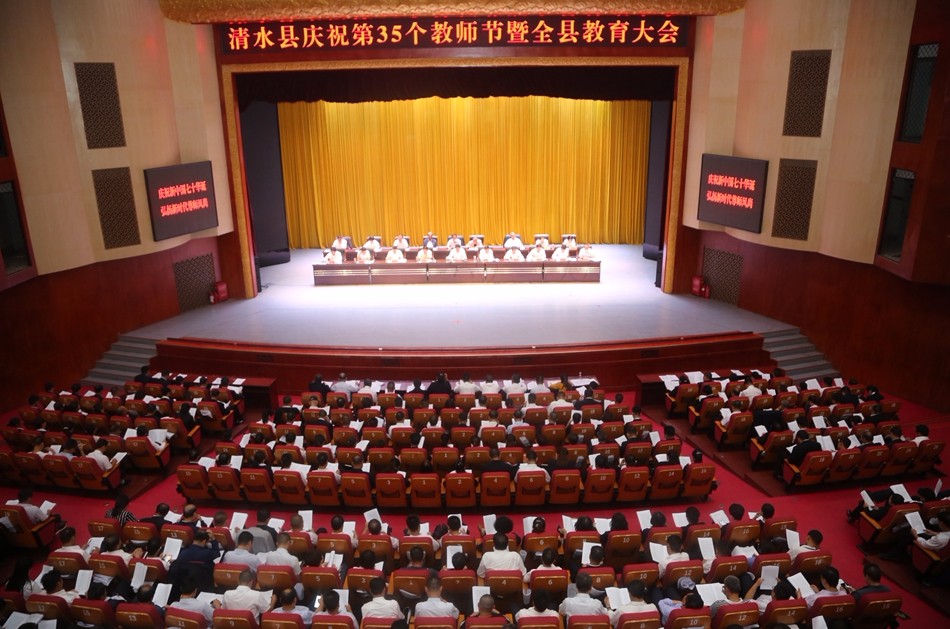 9月7日,清水縣召開慶祝第35個教師節(jié)暨全縣教育大會,全面總結(jié)過去一年來全縣教育工作取得的成績,表彰先進(jìn),樹立典型,安排部署當(dāng)前和今后一個時期全縣教育工作,動員全下上下特別是各級黨政組織和教育戰(zhàn)線上的全體干部職工進(jìn)一步篤定意志、堅(jiān)定信心,振奮精神、扎實(shí)工作,奮力推動全縣教育事業(yè)高質(zhì)量發(fā)展,為全面建成小康社會提供強(qiáng)大的智力支撐和人才保障。