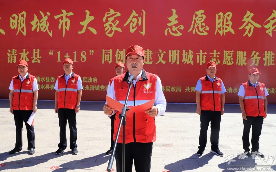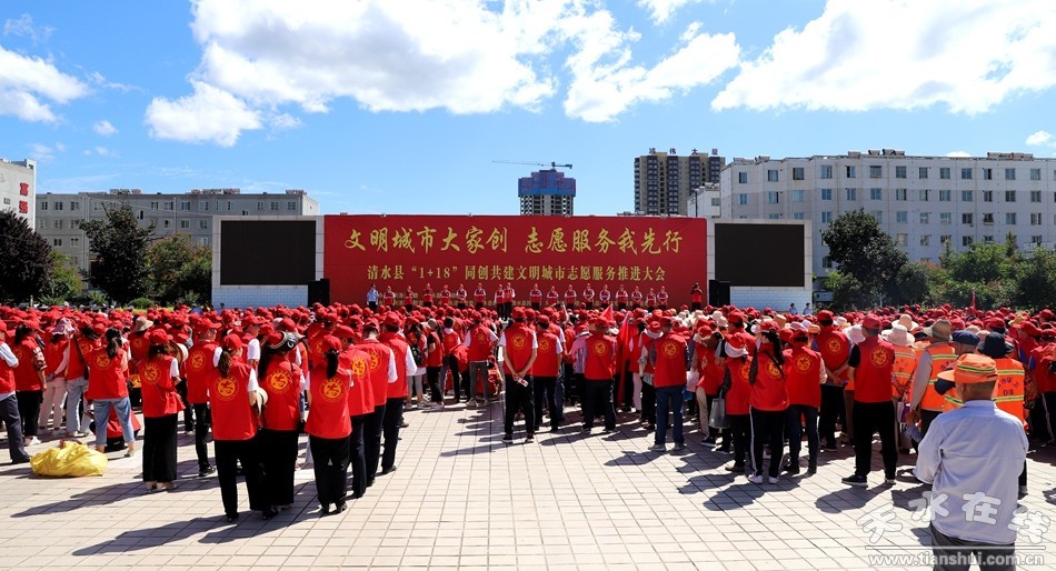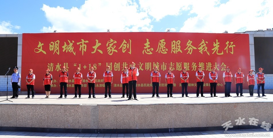 在清水縣創(chuàng)建全國文明城市進(jìn)入最后攻堅(jiān)沖刺關(guān)鍵時(shí)刻,8月19日,清水縣在全縣組織開展以“文明城市大家創(chuàng)志愿服務(wù)我先行”為主題的“1+18”同創(chuàng)共建文明城市志愿服務(wù)推進(jìn)大會(huì),樹立“創(chuàng)城有我、文明有我”的鮮明導(dǎo)向,向全縣發(fā)出倡議,動(dòng)員廣大干部群眾迅速參與到創(chuàng)城工作,堅(jiān)決奪取全面建成小康社會(huì)和成功創(chuàng)建全國文明城市“雙勝利”,交出一份“大戰(zhàn)”“大考”的優(yōu)異答卷。清水縣四大組織全體在家縣級(jí)領(lǐng)導(dǎo)出席會(huì)議。
