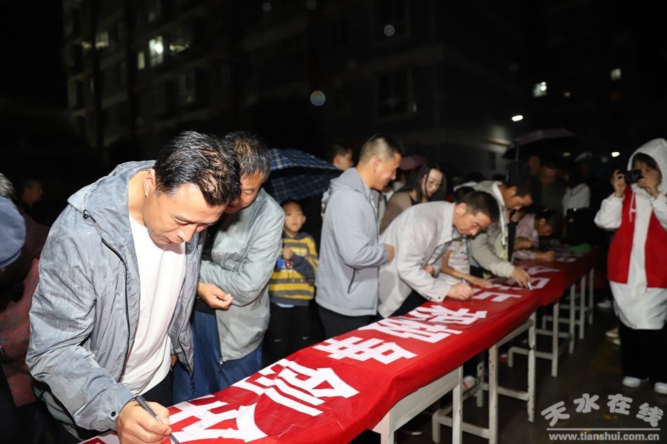當(dāng)晚,永清鎮(zhèn)城南社區(qū)志愿服務(wù)隊(duì)和小區(qū)物業(yè)還發(fā)起了“扮靚家園、創(chuàng)城有我”簽名活動,現(xiàn)場干部和廣大業(yè)主爭先恐后簽下了自己的名字,充分展示了廣大干部群眾“崇尚文明、創(chuàng)城有我”的愿景和決心。