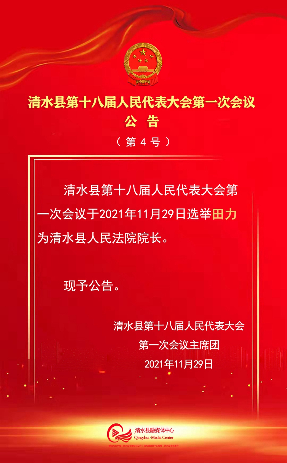 清水縣第十八屆人民代表大會(huì)第一次會(huì)議公告(四)