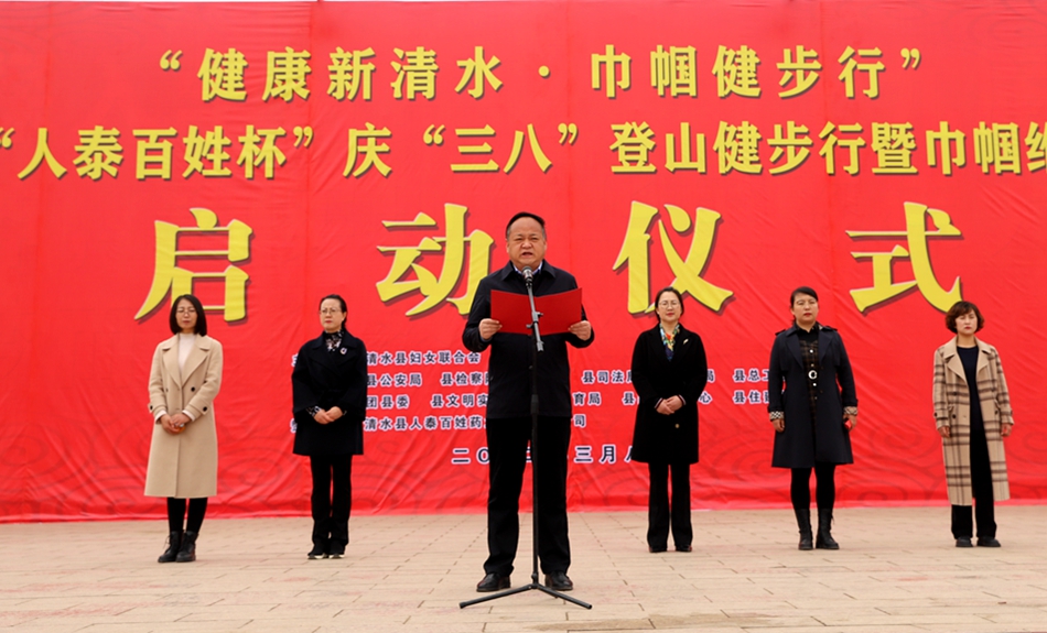 縣委副書記聶衛(wèi)東出席啟動(dòng)儀式,并向全縣廣大婦女致以節(jié)日的問候,鼓勵(lì)大家堅(jiān)持鍛煉身體,緩解心理壓力,保持身心健康,以更好的精神狀態(tài)投入到工作和生活中,為清水經(jīng)濟(jì)社會(huì)高質(zhì)量發(fā)展貢獻(xiàn)巾幗力量?h人大常委會(huì)副主任贠少靈主持儀式。