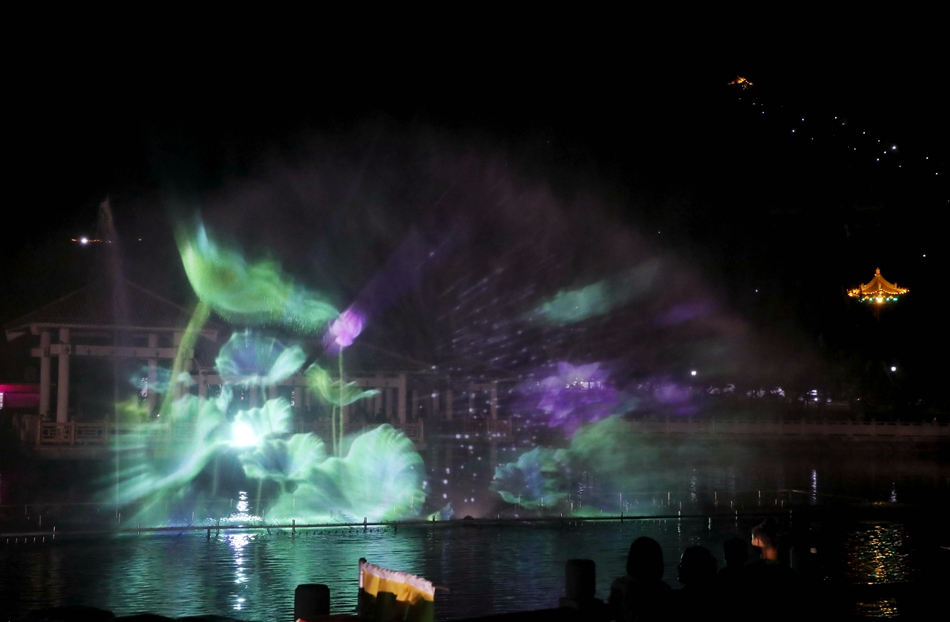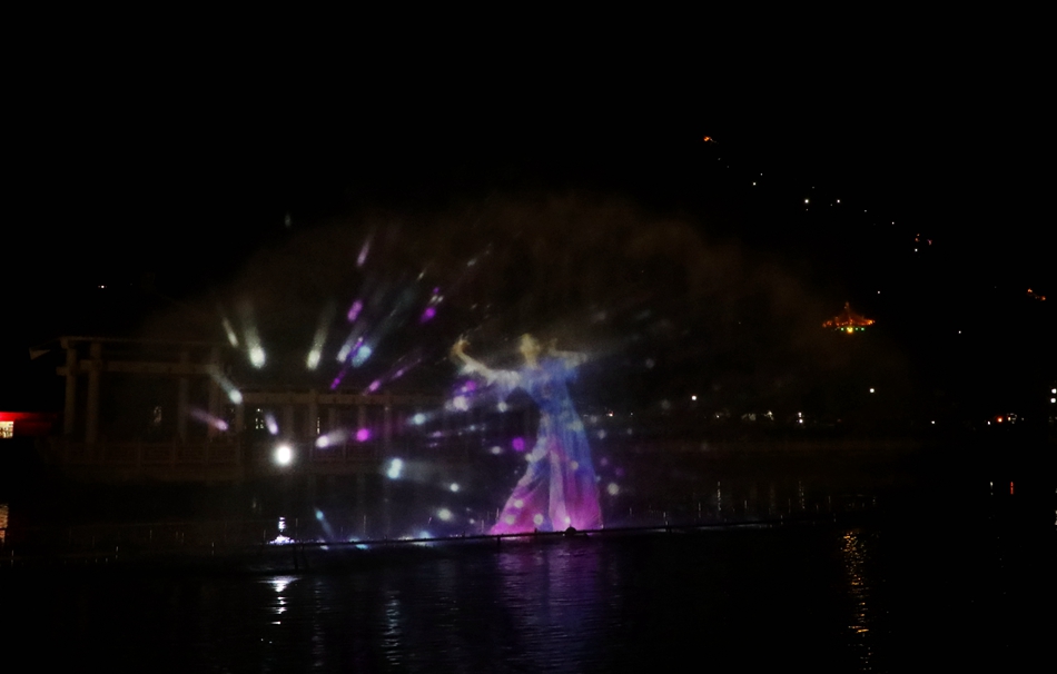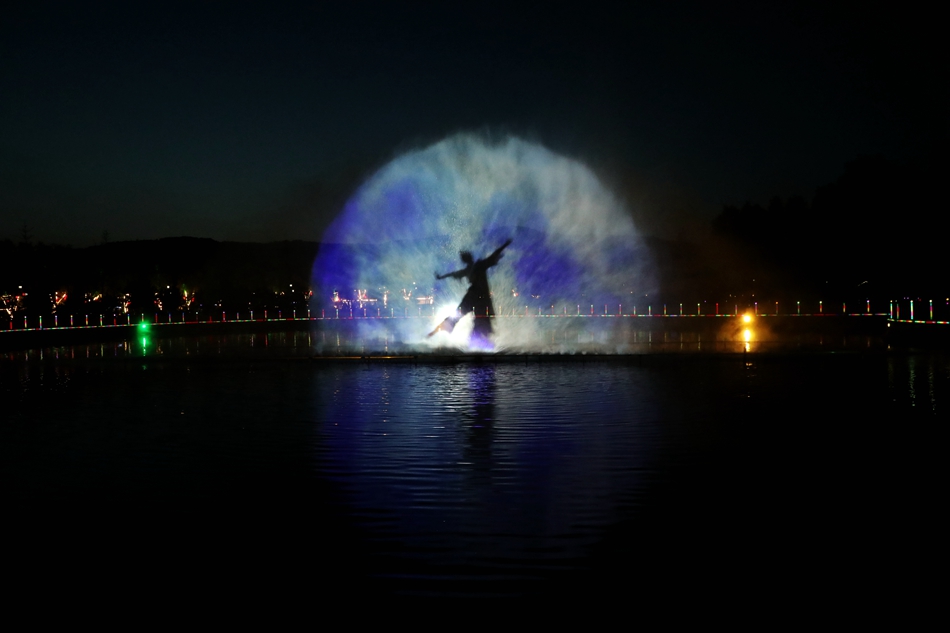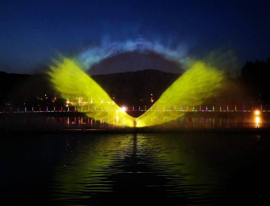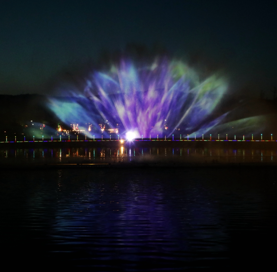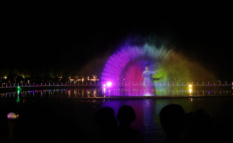軒轅湖水幕電影項(xiàng)目設(shè)計(jì)長32米、寬8米水幕投影區(qū)兩組,水幕投影儀3組,飛龍噴泉6組,搖擺噴泉6組,高噴2組,對噴2組,氛圍燈光2組,采用國際先進(jìn)的投影技術(shù),是目前天水市乃至全省規(guī)模最大,效果最好的水幕電影。