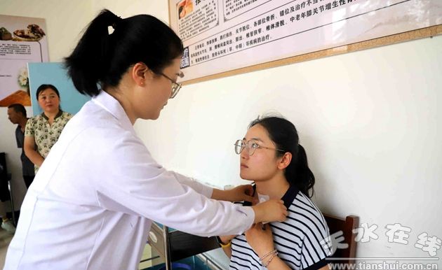 清水縣人民醫(yī)院康復(fù)治療醫(yī)生林彤告訴記者:“又是一年三伏天,清水縣人民醫(yī)院已經(jīng)開展了好多年三伏貼便民服務(wù)活動,主要適用于呼吸系統(tǒng)、慢性支氣管炎、哮喘、過敏性鼻炎、消化不良、慢性腹瀉、慢性關(guān)節(jié)炎、風濕性疼痛等慢性疾病患者。貼了這么多年,患者的反響都比較好。從夏至開始,已經(jīng)有好多患者來預(yù)約要貼三伏貼,有的患者貼完,皮膚會比較敏感,會出現(xiàn)紅、疼、癢等癥狀,這些都是正,F(xiàn)象,貼完早點取掉就好了!