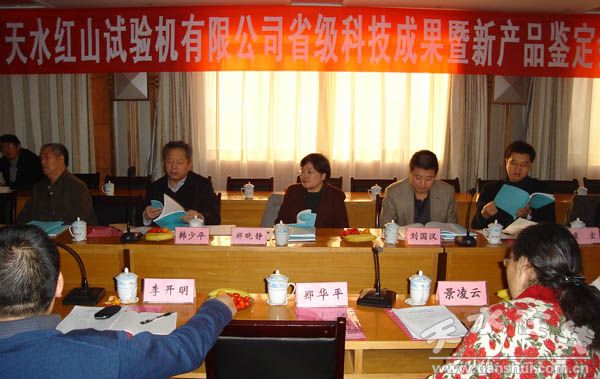 2010年12月11日,天水紅山試驗機有限公司在蘭州飯店召開了2010年省級科技成果暨新產(chǎn)品鑒定會。本次會議由甘肅省科技廳組織、天水市科技局主持,邀請中國科學(xué)院院士、蘭州大學(xué)副校長、博士生導(dǎo)師鄭曉靜擔(dān)任鑒定委員會主任,甘肅省科學(xué)院副院長、研究員劉國漢,甘肅省機械科學(xué)院院長、研究員韓少平擔(dān)任副主任,蘭州理工大學(xué)流體學(xué)院副院長冀宏教授,甘肅省機電產(chǎn)品監(jiān)督檢驗站站長、高級工程師張惠澤,天水鍛壓機床有限公司總工程師、高級工程師蔣文凱,天水星火機床有限公司總設(shè)計師、高級工程師許銘生為專家組成鑒定委員會,對天水紅山試驗機有限公司研制的“復(fù)雜荷載動靜試驗機”、“微機電液伺服控制膨脹管試驗機”、“微機控制30000kN臥式多功能拉力試驗機”、“1000kN花崗巖裂隙水滲透試驗機”四個項目進行了科技成果暨新產(chǎn)品鑒定。