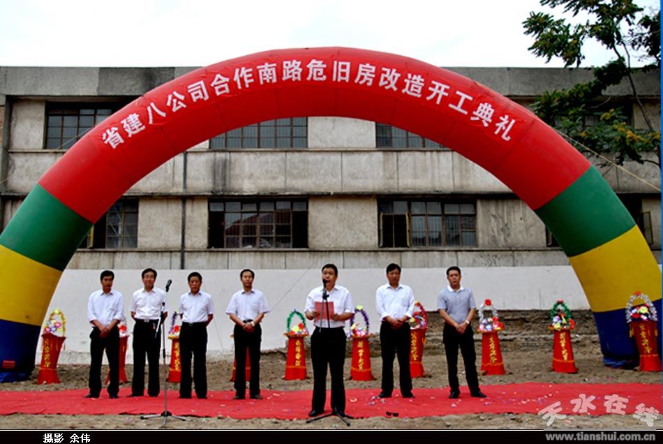 6月16日上午,天水市合作南路西院八公司危舊房改造工程舉行了隆重的開工典禮。甘肅建投集團(tuán)總公司黨委副書記、紀(jì)委書記張育謙同志、八公司領(lǐng)導(dǎo),基層各單位的管理人員、機(jī)關(guān)全體干部以及西院住戶代表共計(jì)150多人參加了開工儀式。