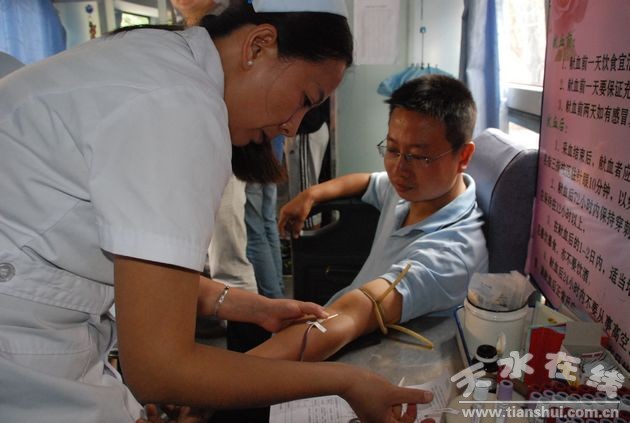 8月2日上午8點半,100多人在星火醫(yī)院門口參加義務獻血活動。隨著天水市中心血站3輛采血車的陸續(xù)到來,所有參加獻血的員工在醫(yī)院和血站工作人員的引導下有序填表、登記并參加體檢,經(jīng)檢查合格的104名員工進行了獻血。經(jīng)過兩個小時的緊張工作,血站工作人員完成了22600毫升的血液采集工作。