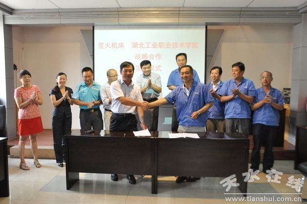 8月23日上午9點(diǎn),星火機(jī)床公司與湖北工業(yè)職業(yè)技術(shù)學(xué)院舉行戰(zhàn)略合作簽約儀式。湖北工業(yè)職業(yè)技術(shù)學(xué)院院長(zhǎng)魏文芳,副院長(zhǎng)李軍及學(xué)院機(jī)電工程系、汽車工程系、校企合作處、校辦等部門領(lǐng)導(dǎo),星火機(jī)床公司董事長(zhǎng)李維謙、黨委書記王永革,總經(jīng)理助理?xiàng)罱饋?lái)、郭建慧,公司工會(huì)、市場(chǎng)技術(shù)部等相關(guān)部門負(fù)責(zé)人和部分技術(shù)人員參加簽約儀式。