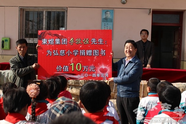 2014年3月23日,甘肅東煜集團(tuán)董事長、總裁李牧恒,為北京廣濟(jì)寺演覺大師捐資的天水市秦州區(qū)皂郊鎮(zhèn)楊集小學(xué)(現(xiàn)弘慈小學(xué))捐贈了價(jià)值10萬元的圖書。