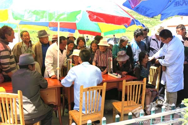按照商定,碌曲縣統(tǒng)戰(zhàn)部將長(zhǎng)城電工巡診義診活動(dòng)場(chǎng)所首先設(shè)在了碌曲縣牧民居住分布較廣、生活貧苦的阿拉鄉(xiāng)中心衛(wèi)生院。從早上10點(diǎn)30分開(kāi)始,牧民便從四面八方陸續(xù)來(lái)到巡診義診場(chǎng)所,并排起了長(zhǎng)隊(duì)。公司醫(yī)務(wù)人員在鄉(xiāng)衛(wèi)生中心醫(yī)務(wù)人員的配合下,認(rèn)真、仔細(xì)、熱情地給前來(lái)就診的牧民進(jìn)行了現(xiàn)場(chǎng)病情診斷、開(kāi)處方、送藥和打針。對(duì)能現(xiàn)場(chǎng)施治的及時(shí)予以治療,對(duì)需要做進(jìn)一步檢查及治療的,提出了下一步的就醫(yī)指導(dǎo)和日常保健。巡診義診活動(dòng)一直持續(xù)至下午17點(diǎn)20分。隨后,醫(yī)療隊(duì)又赴遠(yuǎn)離中心衛(wèi)生院較遠(yuǎn)的村莊,入戶(hù)為不能行走的老人進(jìn)行了診治。全天累計(jì)接診人數(shù)300余人,發(fā)放價(jià)值15000多元的藥品;顒(dòng)受到了當(dāng)?shù)卣c廣大牧民的熱烈歡迎和一致好評(píng)。