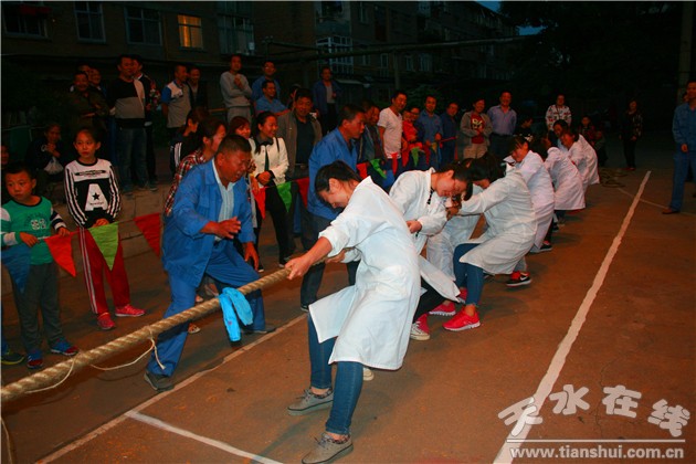 當(dāng)天晚上,秋高氣爽,歡聲笑語(yǔ),拔河比賽現(xiàn)場(chǎng)異常激烈,經(jīng)歷了幾次平局,尤其是實(shí)業(yè)公司職工醫(yī)院與天力特公司隊(duì)女隊(duì)相持不下,最后還是實(shí)業(yè)公司職工醫(yī)院隊(duì)略占上風(fēng),贏得了比賽,技術(shù)中心與天力特別公司男子隊(duì)同樣經(jīng)歷了相持,最后天力特種公司淘汰了技術(shù)中心男子隊(duì)。