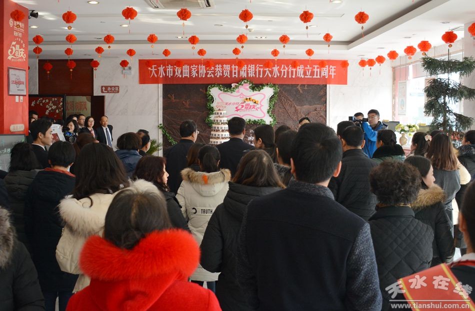 2月5日,甘肅銀行天水分行在成立五周年之際,在營(yíng)業(yè)大廳舉辦五周年慶生活動(dòng);顒(dòng)現(xiàn)場(chǎng),大紅的燈籠和行慶宣傳軟裝扮靚了營(yíng)業(yè)大廳的每一個(gè)角落,營(yíng)造了濃厚的行慶氛圍。