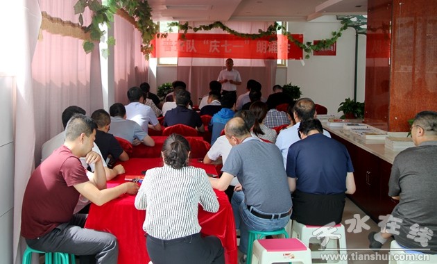 為慶祝中國共產(chǎn)黨成立98周年,緬懷黨的光輝歷史,進(jìn)一步激發(fā)廣大黨員干部的愛國愛黨、愛崗敬業(yè)、開拓奮進(jìn)的使命感和責(zé)任感,展現(xiàn)干部職工團(tuán)結(jié)拼搏、凝神聚力的精神風(fēng)采,營造風(fēng)清氣正、和諧的文化氛圍,7月1日下午,普查隊(duì)黨委在華辰大酒店十二樓舉辦“慶七一”朗誦會(huì),各黨支部共有9名選手參加。他們個(gè)個(gè)精神抖擻、滿腔熱血,用真摯的熱情誦讀了黨的豐功偉績和偉大祖國。(龔偉中)