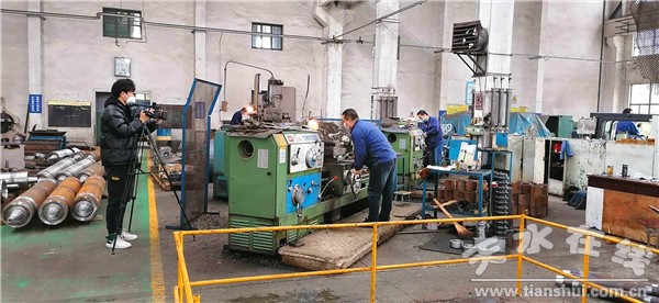 天水鍛壓機床(集團)有限公司由于合同任務緊,根據(jù)中央省市復工復產(chǎn)的通知精神,積極做好復工生產(chǎn)工作,經(jīng)過嚴格的排查后和嚴格的消毒和體溫檢測,職工佩戴口罩于2020年2月10日陸續(xù)上班,趕制合同產(chǎn)品,并結(jié)合生產(chǎn)合同開展了“打贏疫情防控阻擊戰(zhàn)”主題勞動競賽活動,受到了媒體的關注,連日來,甘肅工人報、蘭州晨報、天水日報、天水電視臺、天水在線、麥積電視臺關注并聚集天水鍛壓復工生產(chǎn)。