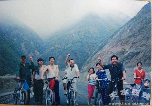 十九年前,我們天光十幾人曾經(jīng)在秦安品嘗的肚絲湯味道和今天依然一樣,只是那時我們正年輕,風(fēng)華正茂,雖然沒有激揚(yáng)文字的胸懷卻也是有敢沖敢闖的拼勁。時任天光公司黨委副書記安彪,策劃了一場自行車遠(yuǎn)距離騎行,由天水途經(jīng)“唐家鳳臺隧道”,到卦臺山,再到秦安縣城,最后到城郊天光舊址,然后原路返回。沒有人嘗試過一天100多公里的漫長騎行。勇敢的騎友:李建平、齊志毅、馮彪、伏建林、陳永紅、陳繼紅、周密、劉文斌及女兒金貝貝,還有我周小燕。