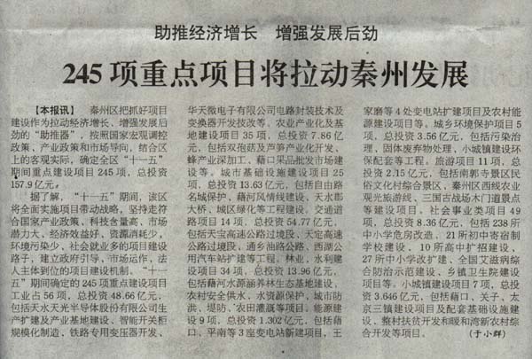 【本報訊】 秦州區(qū)把抓好項目建設作為拉動經(jīng)濟增長、增強發(fā)展后勁的“助推器”,按照國家宏觀調控政策、產(chǎn)業(yè)政策和市場導向,結合區(qū)上的客觀實際,確定全區(qū)“十一五”期間重點建設項目245項,總投資157.9億元。