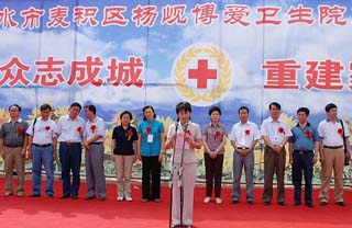 7月11日至12日,咸輝陪同江亦曼一行前往天水市,參加在3個鄉(xiāng)鎮(zhèn)舉行的紅十字博愛衛(wèi)生院、博愛新村、博愛學校重建開工儀式。