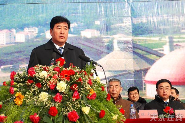 這個(gè)項(xiàng)目能落戶天水,是各級(jí)黨委、政府積極實(shí)施“工業(yè)強(qiáng)省”戰(zhàn)略,落實(shí)“發(fā)展抓項(xiàng)目”重要舉措的一項(xiàng)重要成果,是中材集團(tuán)公司準(zhǔn)確把握發(fā)展機(jī)遇,壯大企業(yè)實(shí)力的正確決策。項(xiàng)目建成后,將有力地推動(dòng)天水建材工業(yè)結(jié)構(gòu)調(diào)整和節(jié)能減排工作,對(duì)促進(jìn)勞動(dòng)力就業(yè),加快地方經(jīng)濟(jì)發(fā)展將產(chǎn)生積極作用。全市上下要為項(xiàng)目建設(shè)創(chuàng)造良好的發(fā)展環(huán)境,進(jìn)一步加強(qiáng)組織領(lǐng)導(dǎo),各有關(guān)部門、單位和秦州區(qū)要積極協(xié)調(diào)配合,全力支持中材集團(tuán)搞好項(xiàng)目建設(shè)。希望中材集團(tuán)天水項(xiàng)目部精心組織,科學(xué)施工,以一流的效率和一流的質(zhì)量,建設(shè)工藝先進(jìn)、裝備精良、質(zhì)量可靠的一流工程。我們相信,有省委、省政府的正確領(lǐng)導(dǎo),有省人大、省政協(xié)的大力支持,有中國(guó)中材集團(tuán)和天水市各級(jí)黨政組織的共同努力,中材集團(tuán)天水日產(chǎn)2×2500噸新型干法水泥生產(chǎn)線項(xiàng)目一定能夠按期完工,早日投產(chǎn),發(fā)揮效益。