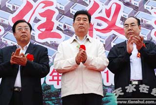 市委書記、市人大常委會主任張景輝在災(zāi)情發(fā)生后,多次深入到秦州區(qū)檢查指導(dǎo)抗震救災(zāi)及災(zāi)后重建工作,并把玉泉鎮(zhèn)馬蘭村趙家咀自然村確定為自己的災(zāi)后重建幫扶點(diǎn),協(xié)調(diào)中國紅十字會等社會團(tuán)體對該村的災(zāi)后重建工作進(jìn)行幫扶。目前,該村異地選址重建的“博愛新村”主體工程已全部竣工。