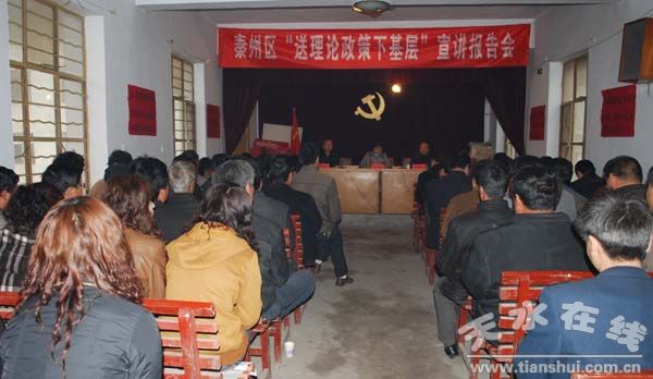 舒健在講話中指出,“送政策、理論宣傳下基層”活動,作為“八送八下基層”活動之一,主要任務(wù)是廣泛宣傳科學(xué)發(fā)展觀等政策理論和中央、省、市、區(qū)關(guān)于加快經(jīng)濟(jì)社會發(fā)展的一系列政策措施,突出學(xué)習(xí)和宣傳好國家“關(guān)中——天水經(jīng)濟(jì)區(qū)”發(fā)展規(guī)劃及省政府貫徹實(shí)施意見,學(xué)習(xí)和宣傳好省委、省政府“中心帶動、兩翼齊飛、組團(tuán)發(fā)展、整體推進(jìn)”的區(qū)域發(fā)展戰(zhàn)略及市委、市政府“1135”發(fā)展戰(zhàn)略,讓國家、省、市的重大戰(zhàn)略部署深入各級干部頭腦,幫助廣大干部群眾加深對黨的理論路線、方針政策的理解,不斷增強(qiáng)貫徹落實(shí)的自覺性,為加快推進(jìn)富裕、文明、和諧的隴上強(qiáng)區(qū)建設(shè),努力實(shí)現(xiàn)秦州經(jīng)濟(jì)社會又好又快發(fā)展提供強(qiáng)大的精神動力和智力支持。