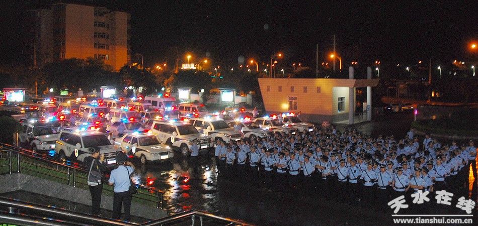 (7月5日晚,市公安局秦州分局出動警力228人、警車40多輛在全區(qū)范圍內(nèi)開展社會治安集中整治“百日利劍”行動,)
