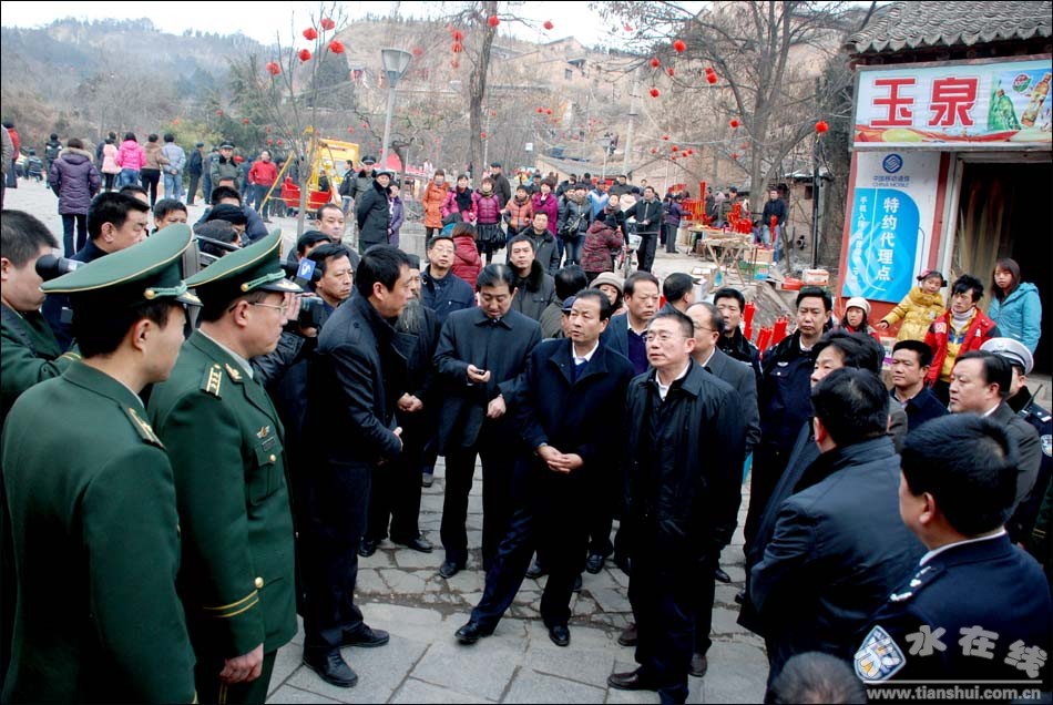 1月30日,市委副書記、市長王銳,市委常委、常務(wù)副市長郭奇若,市委常委、秦州區(qū)委書記張明泰,市委常委、宣傳部長彭鴻嘉,副市長霍衛(wèi)平,市長助理呂淙江帶領(lǐng)市文化局、公安局等相關(guān)單位負責(zé)人對我市春節(jié)期間開展的玉泉觀、伏羲廟文化廟會等群眾文化活動的安排情況進行了檢查。