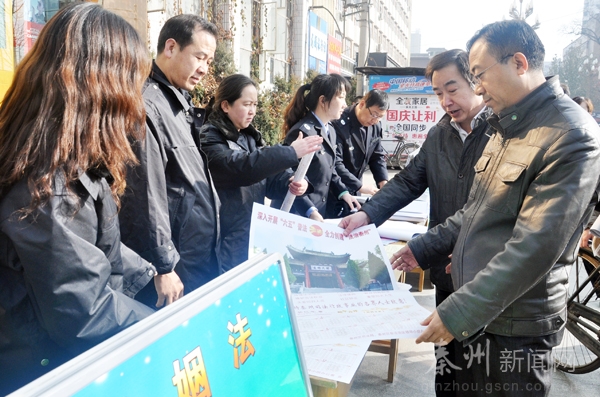 。▍^(qū)司法局)為了切實做好今年“12.4”全國法制宣傳日宣傳活動,秦州區(qū)緊緊圍繞“弘揚憲法精神,服務(wù)科學(xué)發(fā)展”這一活動主題,以全面深化“六五”普法工作為抓手,以“法律七進(jìn)”活動為載體,與時俱進(jìn),開拓創(chuàng)新,開展了一系列形式多樣、豐富多彩的法制宣傳活動;顒赢(dāng)天,區(qū)委常委、常務(wù)副區(qū)長張憲泉對活動開展情況進(jìn)行了現(xiàn)場檢查。