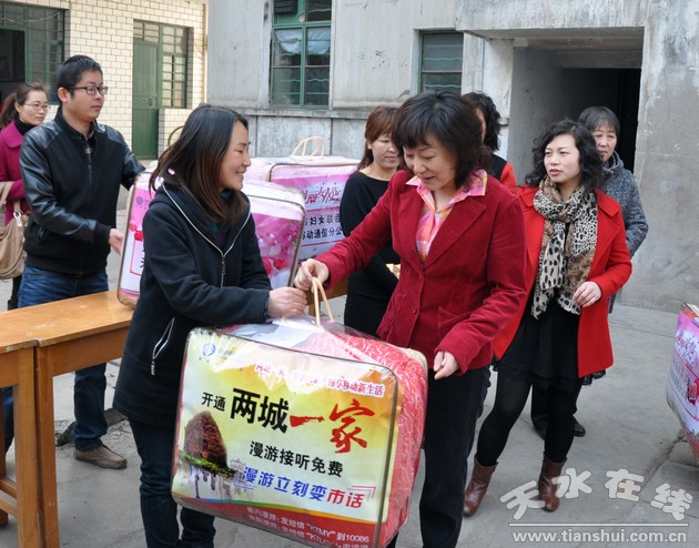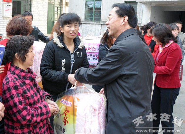 今日是“三八”婦女節(jié),天水市政府副市長楊建瑩、市政協(xié)副主席雷傳昌帶領(lǐng)市政府辦公室、市婦聯(lián)、市委農(nóng)工部、天水移動分公司等有關(guān)單位負(fù)責(zé)人,深入秦州區(qū)慰問農(nóng)村留守婦女及貧困母親,向她們送去了節(jié)日的問候與祝福。