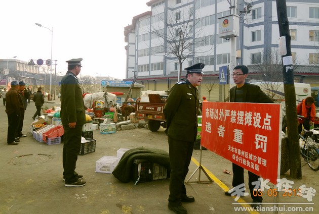 (秦州區(qū)執(zhí)法局 建成 田斌)春節(jié)過(guò)后,受年貨市場(chǎng)的影響,堅(jiān)家河市場(chǎng)外溢和占道經(jīng)營(yíng)問(wèn)題突出,嚴(yán)重影響市容市貌和周邊市民的日常出行。3月4日,秦州區(qū)政府副區(qū)長(zhǎng)顧應(yīng)存帶領(lǐng)督察組召開現(xiàn)場(chǎng)會(huì),對(duì)堅(jiān)家河市場(chǎng)秩序提出了整治要求。秦州區(qū)執(zhí)法局及時(shí)貫徹落實(shí)現(xiàn)場(chǎng)會(huì)精神,開展了堅(jiān)家河市場(chǎng)專項(xiàng)整治工作,并于3月11日上午組織觀摩驗(yàn)收整治工作。局領(lǐng)導(dǎo)、各股室負(fù)責(zé)人以及各中隊(duì)隊(duì)長(zhǎng)、指導(dǎo)員參加了本次活動(dòng),活動(dòng)對(duì)專項(xiàng)整治工作的亮點(diǎn)進(jìn)行了觀摩和交流,達(dá)到了“以觀摩促管理,以亮點(diǎn)帶全局”的目的。該局在堅(jiān)家河市場(chǎng)專項(xiàng)整治工作中主要采取了以下措施:
